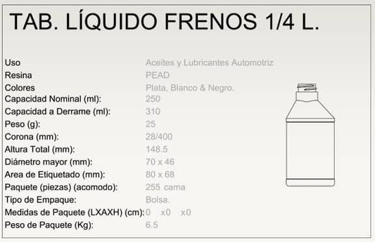 Tableado liquido frenos 1/4 lt. (TLF 1/4)